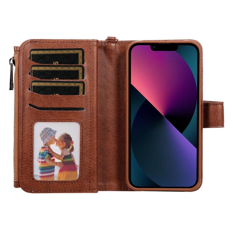 Capa para celular de bolso com zíper KT série 4 multifuncional para iPhone 14, capa removível 2 em 1 para carteira de couro PU