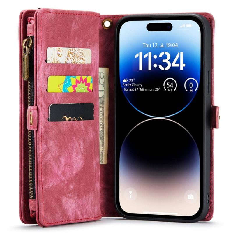 Bolsa tipo Carteira 2-em-1 Multifuncional Caseme para iPhone 14 Pro Max - Vermelho