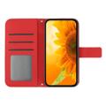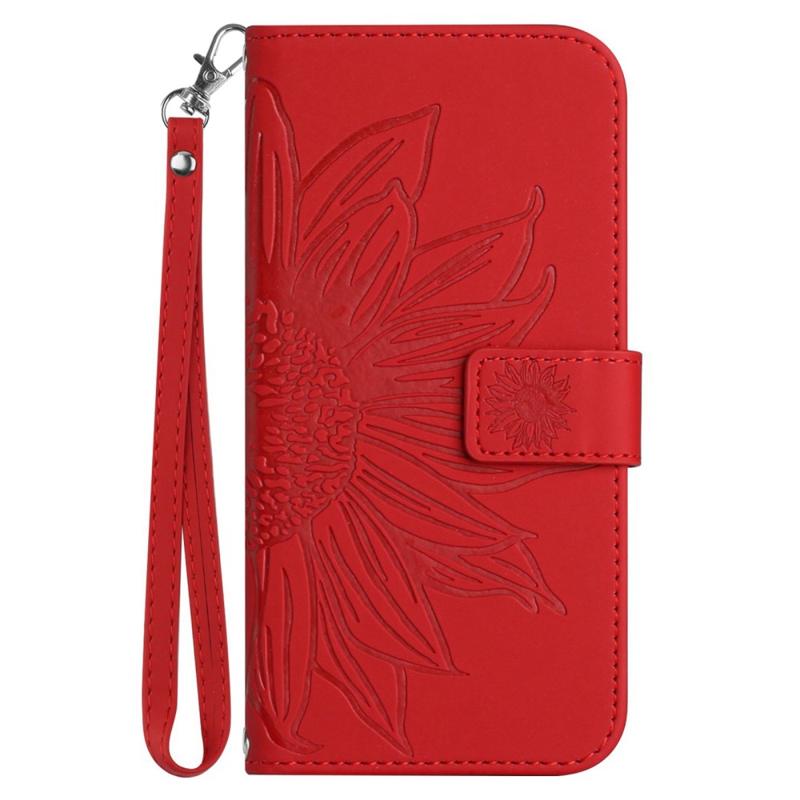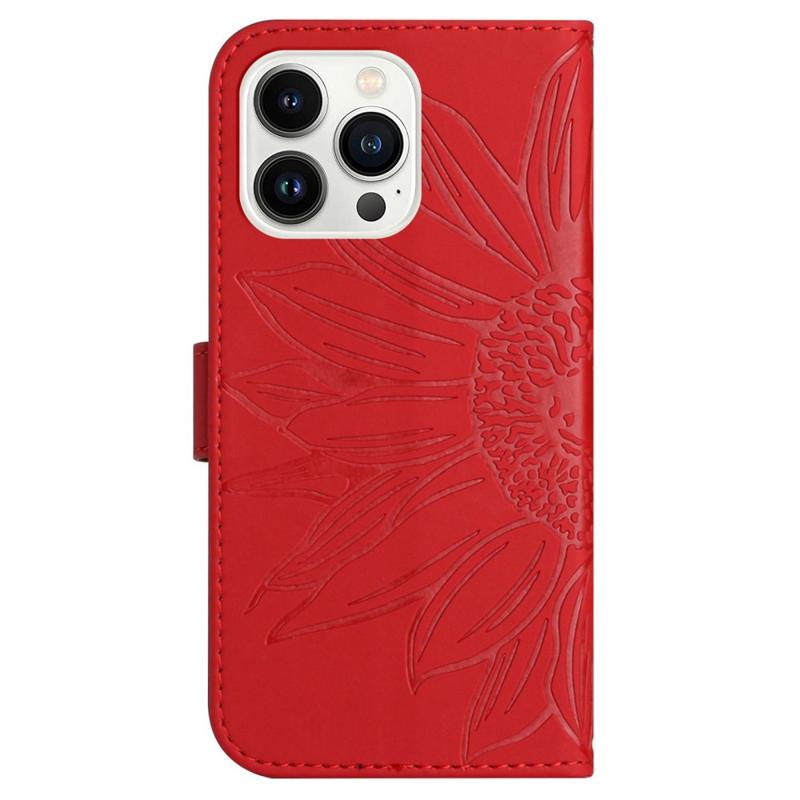 Capa de telefone flip à prova de colisão para iPhone 14 Pro Max, suporte de girassol impresso HT04 Capa de carteira magnética de toque de pele de couro PU com alça