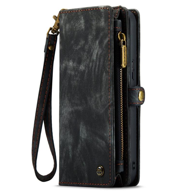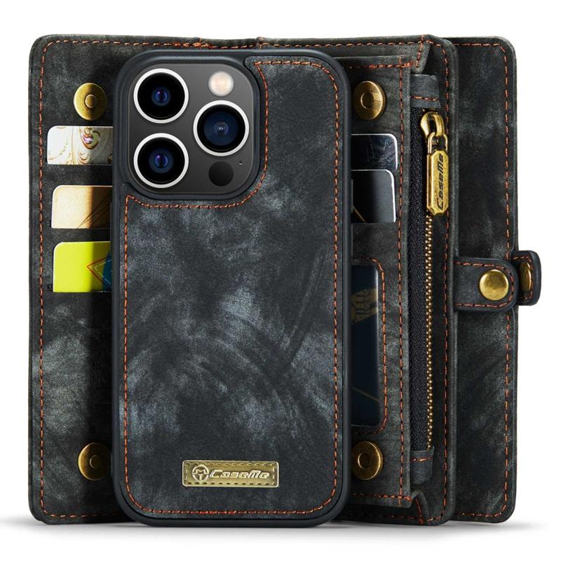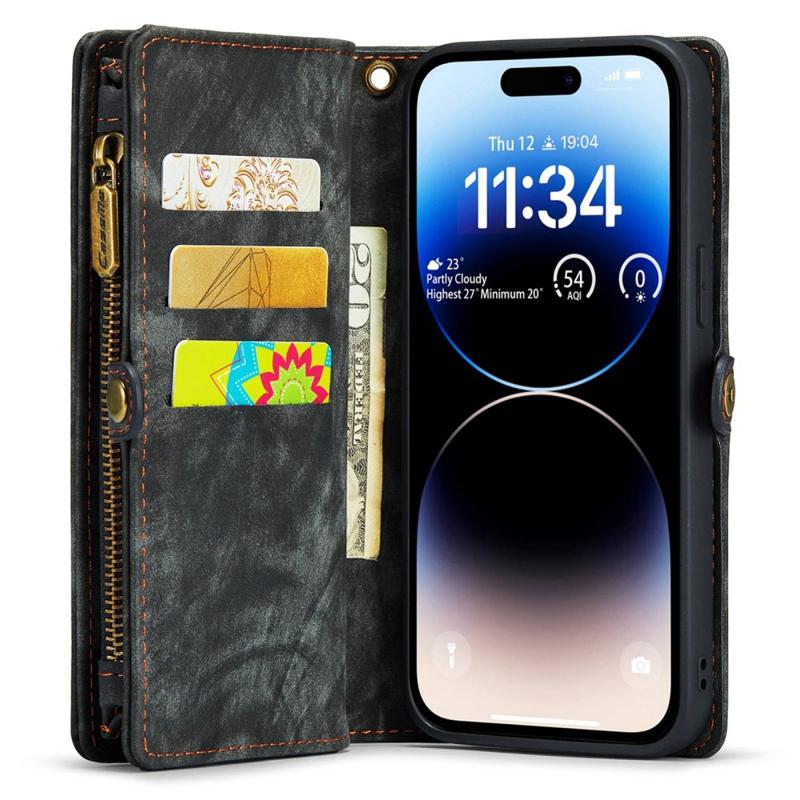 CASEME 008 Series para iPhone 14 Pro Max Capa de telefone magnética destacável multifuncional de couro dividida com zíper bolso capa de carteira com alça