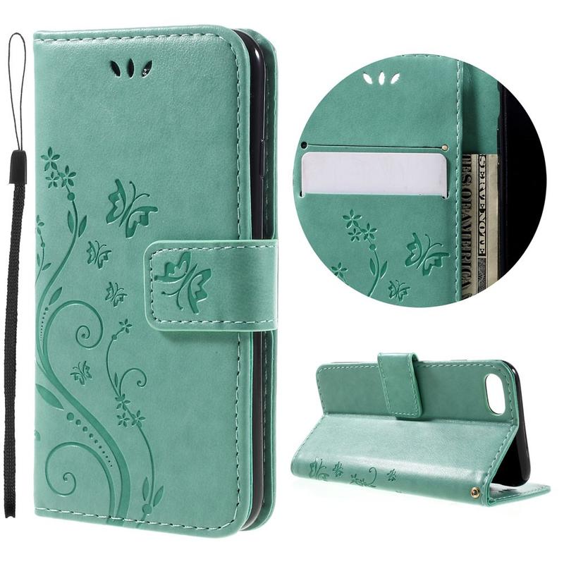 - Bolsa tipo carteira de alta qualidade para iPhone 7, iPhone 8, iPhone SE (2020), iPhone SE (2022) com um padrão de borboleta