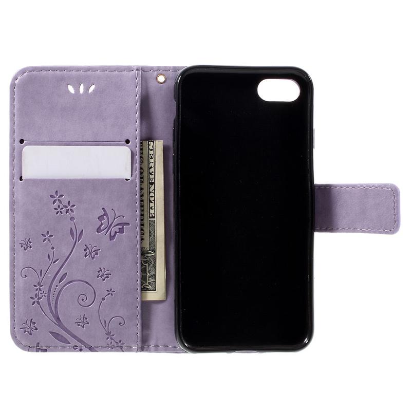 - Bolsa tipo carteira de alta qualidade para iPhone 7, iPhone 8, iPhone SE (2020), iPhone SE (2022) com um padrão de borboleta