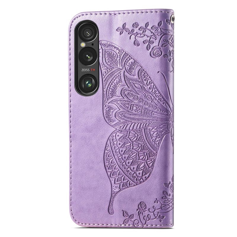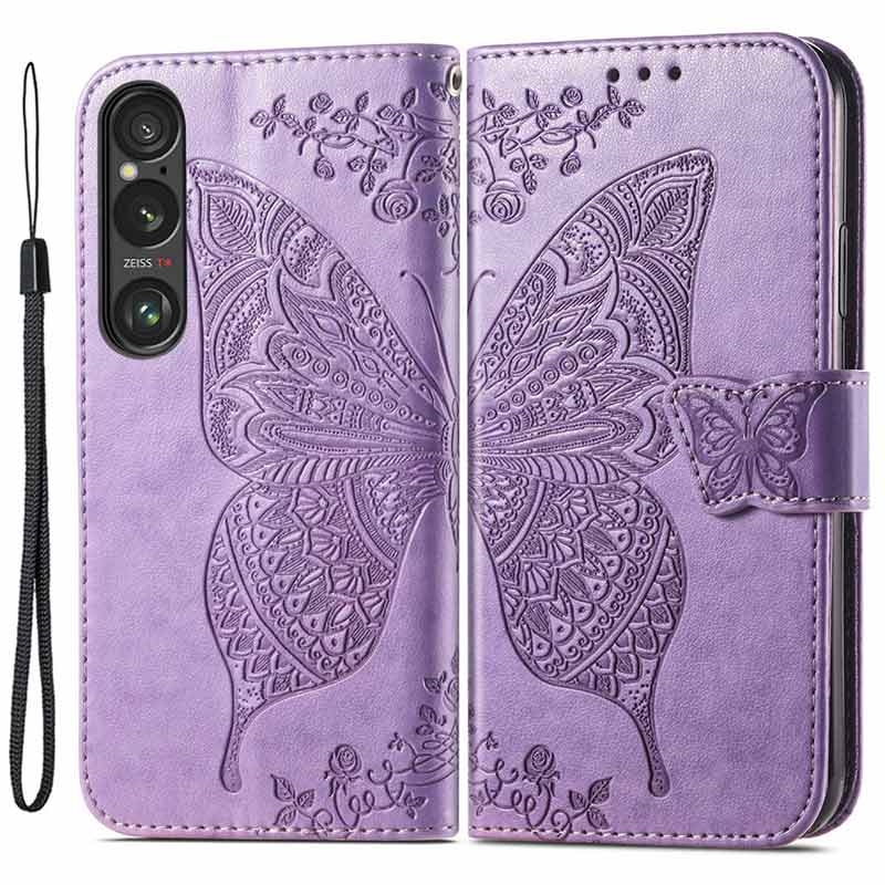 - Bolsa tipo carteira de alta qualidade para Sony Xperia 1 VI com um padrão de borboleta