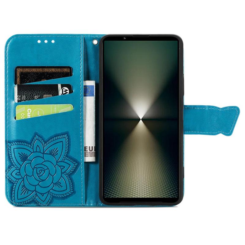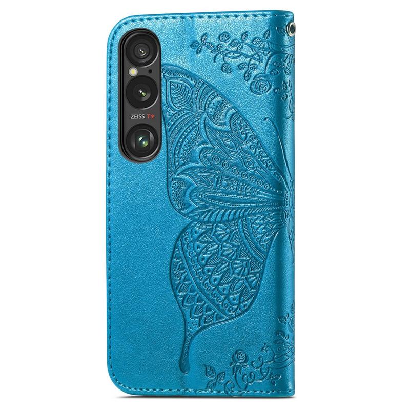 - Bolsa tipo carteira de alta qualidade para Sony Xperia 1 VI com um padrão de borboleta