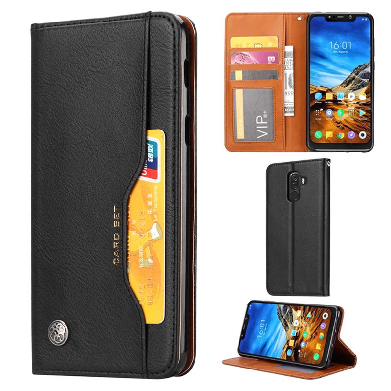 - Bolsa tipo carteira premium com ranhura frontal para Xiaomi Pocophone F1