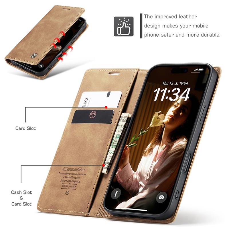 - Bolsa tipo carteira Caseme 013 Series para o seu precioso iPhone 16 Plus
