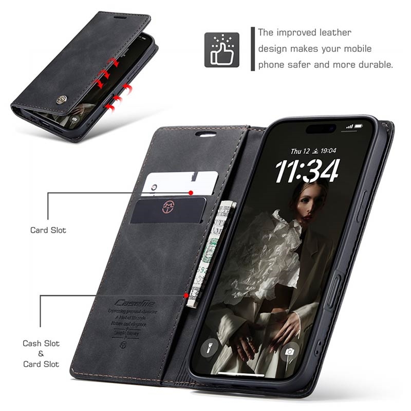 - Bolsa tipo carteira Caseme 013 Series para o seu precioso iPhone 16 Plus