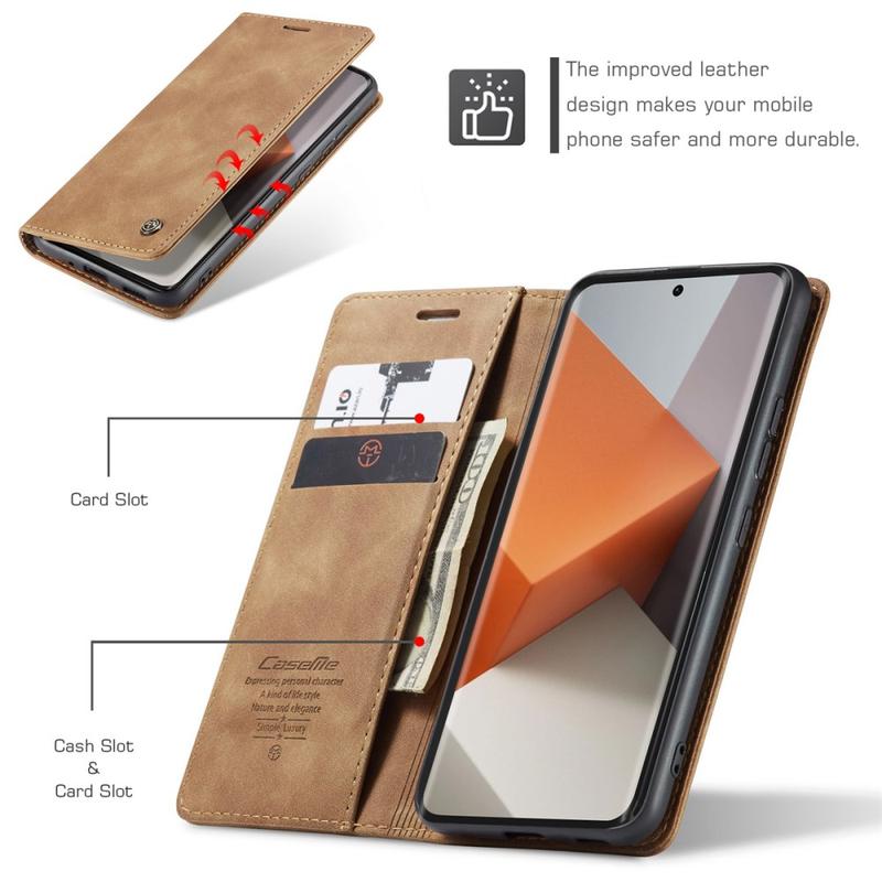 - Bolsa tipo carteira Caseme 013 Series para o seu precioso Xiaomi Redmi Note 13 Pro+
