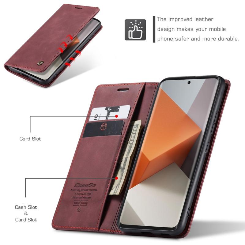 - Bolsa tipo carteira Caseme 013 Series para o seu precioso Xiaomi Redmi Note 13 Pro+