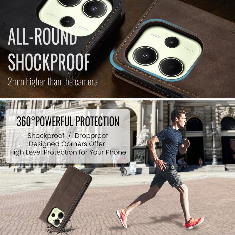 - Bolsa tipo carteira Caseme 013 Series para o seu precioso Xiaomi Redmi Note 14 4G