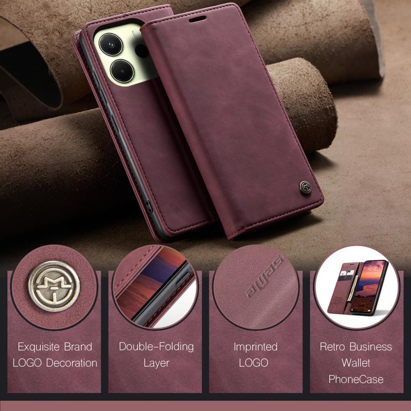 Bolsa Tipo Carteira Caseme 013 Series para Xiaomi Redmi Note 14 4G - Grená