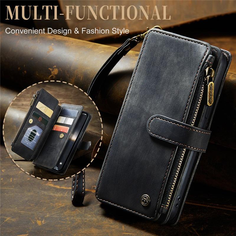 A bolsa estilo carteira multifuncional Caseme C30 para o iPhone 15 traz uma proteção excecional e um design exclusivo e refinado. Esta elegante bolsa é feita de poliuretano de primeira categoria e reforçada com uma capa interior em TPU resistente a choques que aconchega perfeitamente o seu iPhone 15. Ao mesmo tempo, a bolsa tipo carteira Caseme C30 é melhorada com numerosas divisórias para cartões, um grande compartimento para dinheiro no interior, e um bolso exterior com fecho de correr, tudo protegido por um fecho magnético seguro.