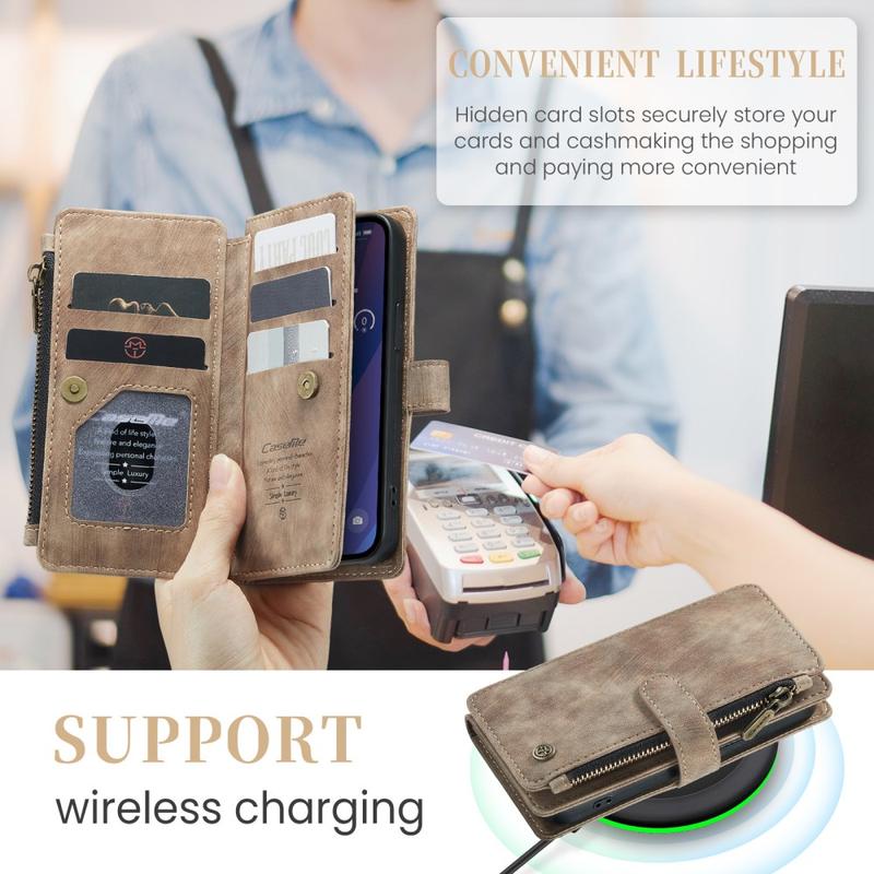A bolsa estilo carteira multifuncional Caseme C30 para o iPhone 16 traz uma proteção excecional e um design exclusivo e refinado. Esta elegante bolsa é feita de poliuretano de primeira categoria e reforçada com uma capa interior em TPU resistente a choques que aconchega perfeitamente o seu iPhone 16. Ao mesmo tempo, a bolsa tipo carteira Caseme C30 é melhorada com numerosas divisórias para cartões, um grande compartimento para dinheiro no interior, e um bolso exterior com fecho de correr, tudo protegido por um fecho magnético seguro.