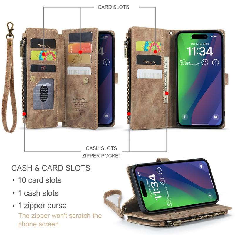 A bolsa estilo carteira multifuncional Caseme C30 para o iPhone 16 Plus traz uma proteção excecional e um design exclusivo e refinado. Esta elegante bolsa é feita de poliuretano de primeira categoria e reforçada com uma capa interior em TPU resistente a choques que aconchega perfeitamente o seu iPhone 16 Plus. Ao mesmo tempo, a bolsa tipo carteira Caseme C30 é melhorada com numerosas divisórias para cartões, um grande compartimento para dinheiro no interior, e um bolso exterior com fecho de correr, tudo protegido por um fecho magnético seguro.