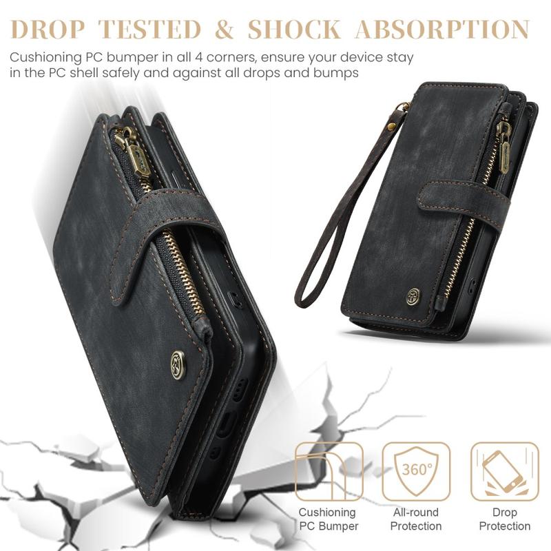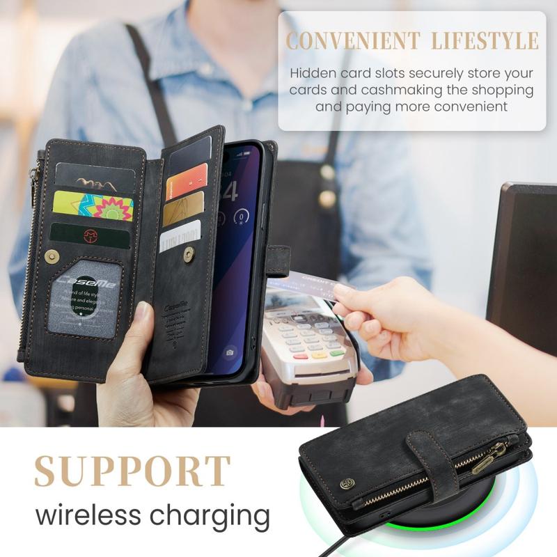 A bolsa estilo carteira multifuncional Caseme C30 para o iPhone 16 Plus traz uma proteção excecional e um design exclusivo e refinado. Esta elegante bolsa é feita de poliuretano de primeira categoria e reforçada com uma capa interior em TPU resistente a choques que aconchega perfeitamente o seu iPhone 16 Plus. Ao mesmo tempo, a bolsa tipo carteira Caseme C30 é melhorada com numerosas divisórias para cartões, um grande compartimento para dinheiro no interior, e um bolso exterior com fecho de correr, tudo protegido por um fecho magnético seguro.