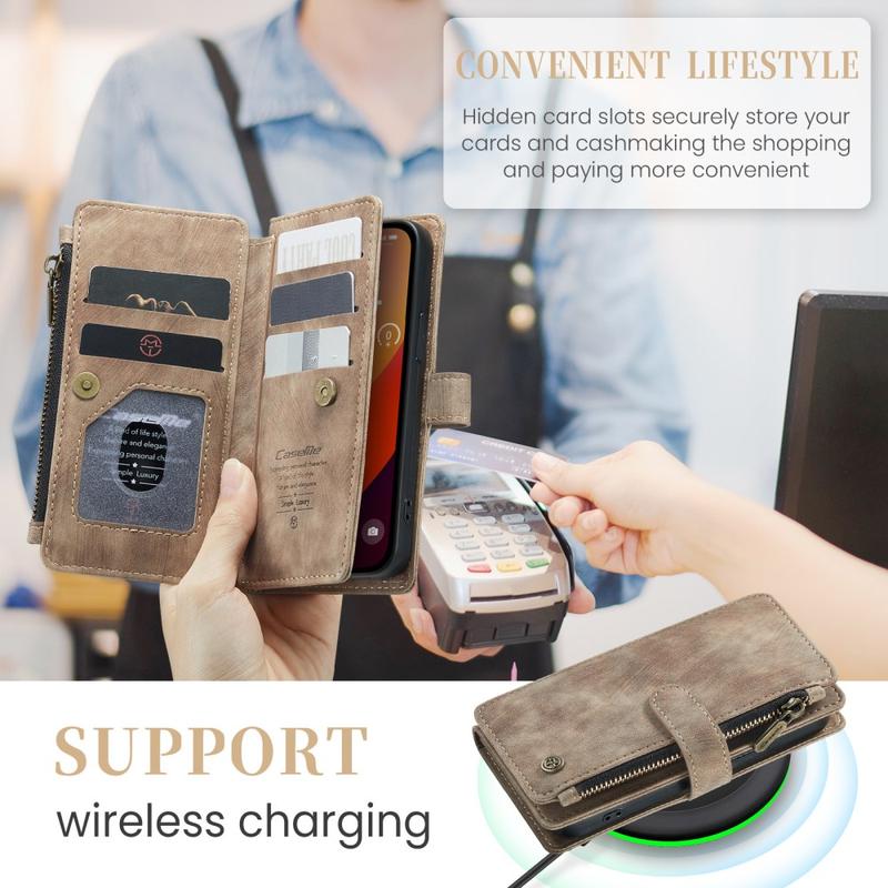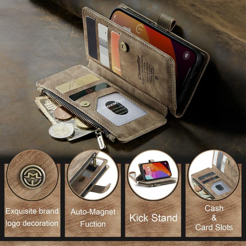 A bolsa estilo carteira multifuncional Caseme C30 para o iPhone 16 Pro traz uma proteção excecional e um design exclusivo e refinado. Esta elegante bolsa é feita de poliuretano de primeira categoria e reforçada com uma capa interior em TPU resistente a choques que aconchega perfeitamente o seu iPhone 16 Pro. Ao mesmo tempo, a bolsa tipo carteira Caseme C30 é melhorada com numerosas divisórias para cartões, um grande compartimento para dinheiro no interior, e um bolso exterior com fecho de correr, tudo protegido por um fecho magnético seguro.