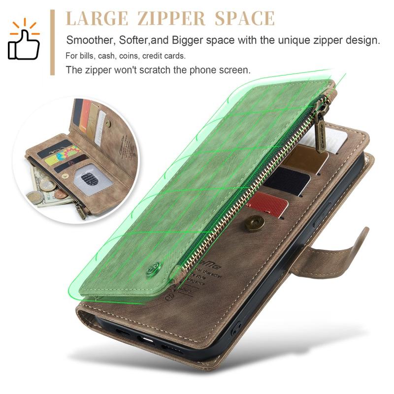 A bolsa estilo carteira multifuncional Caseme C30 para o iPhone 16 Pro Max traz uma proteção excecional e um design exclusivo e refinado. Esta elegante bolsa é feita de poliuretano de primeira categoria e reforçada com uma capa interior em TPU resistente a choques que aconchega perfeitamente o seu iPhone 16 Pro Max. Ao mesmo tempo, a bolsa tipo carteira Caseme C30 é melhorada com numerosas divisórias para cartões, um grande compartimento para dinheiro no interior, e um bolso exterior com fecho de correr, tudo protegido por um fecho magnético seguro.