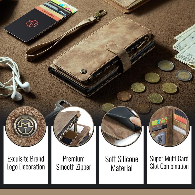 A bolsa estilo carteira multifuncional Caseme C30 para o iPhone 17 Pro traz uma proteção excecional e um design exclusivo e refinado. Esta elegante bolsa é feita de poliuretano de primeira categoria e reforçada com uma capa interior em TPU resistente a choques que aconchega perfeitamente o seu iPhone 17 Pro. Ao mesmo tempo, a bolsa tipo carteira Caseme C30 é melhorada com numerosas divisórias para cartões, um grande compartimento para dinheiro no interior, e um bolso exterior com fecho de correr, tudo protegido por um fecho magnético seguro.