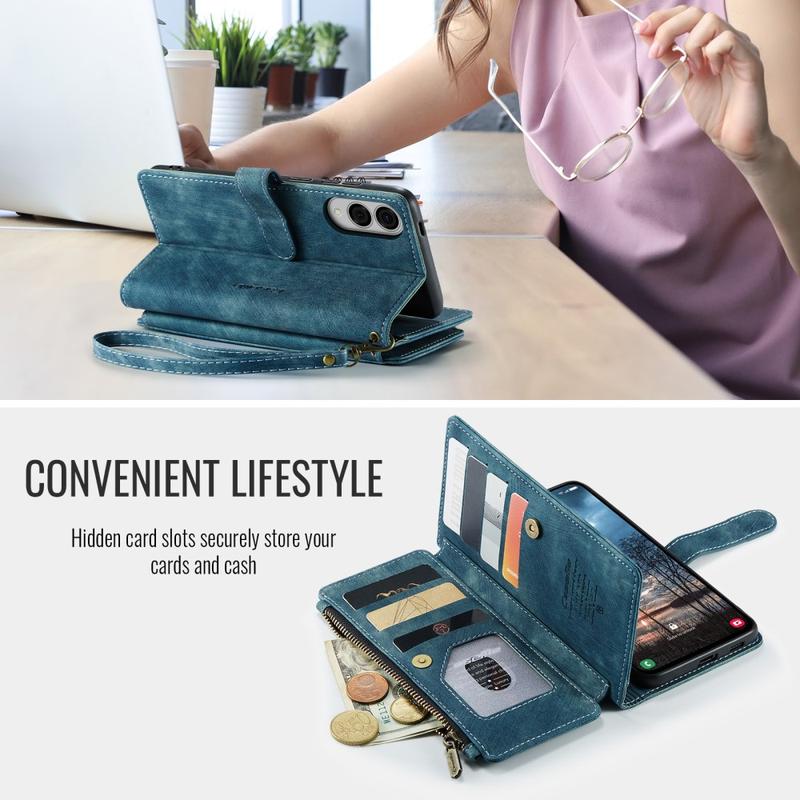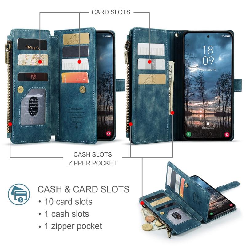 A bolsa estilo carteira multifuncional Caseme C30 para o Samsung Galaxy S25 Edge traz uma proteção excecional e um design exclusivo e refinado. Esta elegante bolsa é feita de poliuretano de primeira categoria e reforçada com uma capa interior em TPU resistente a choques que aconchega perfeitamente o seu Samsung Galaxy S25 Edge. Ao mesmo tempo, a bolsa tipo carteira Caseme C30 é melhorada com numerosas divisórias para cartões, um grande compartimento para dinheiro no interior, e um bolso exterior com fecho de correr, tudo protegido por um fecho magnético seguro.