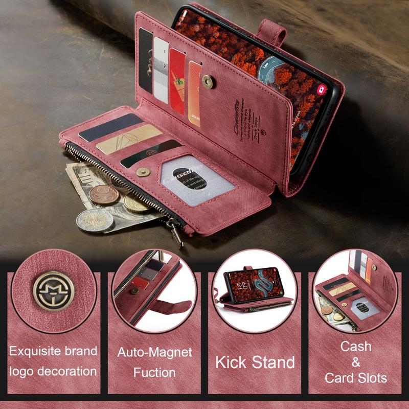 A bolsa estilo carteira multifuncional Caseme C30 para o Samsung Galaxy S25+ traz uma proteção excecional e um design exclusivo e refinado. Esta elegante bolsa é feita de poliuretano de primeira categoria e reforçada com uma capa interior em TPU resistente a choques que aconchega perfeitamente o seu Samsung Galaxy S25+. Ao mesmo tempo, a bolsa tipo carteira Caseme C30 é melhorada com numerosas divisórias para cartões, um grande compartimento para dinheiro no interior, e um bolso exterior com fecho de correr, tudo protegido por um fecho magnético seguro.