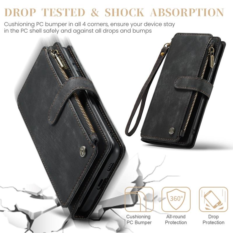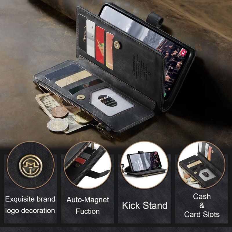 A bolsa estilo carteira multifuncional Caseme C30 para o Samsung Galaxy S25+ traz uma proteção excecional e um design exclusivo e refinado. Esta elegante bolsa é feita de poliuretano de primeira categoria e reforçada com uma capa interior em TPU resistente a choques que aconchega perfeitamente o seu Samsung Galaxy S25+. Ao mesmo tempo, a bolsa tipo carteira Caseme C30 é melhorada com numerosas divisórias para cartões, um grande compartimento para dinheiro no interior, e um bolso exterior com fecho de correr, tudo protegido por um fecho magnético seguro.