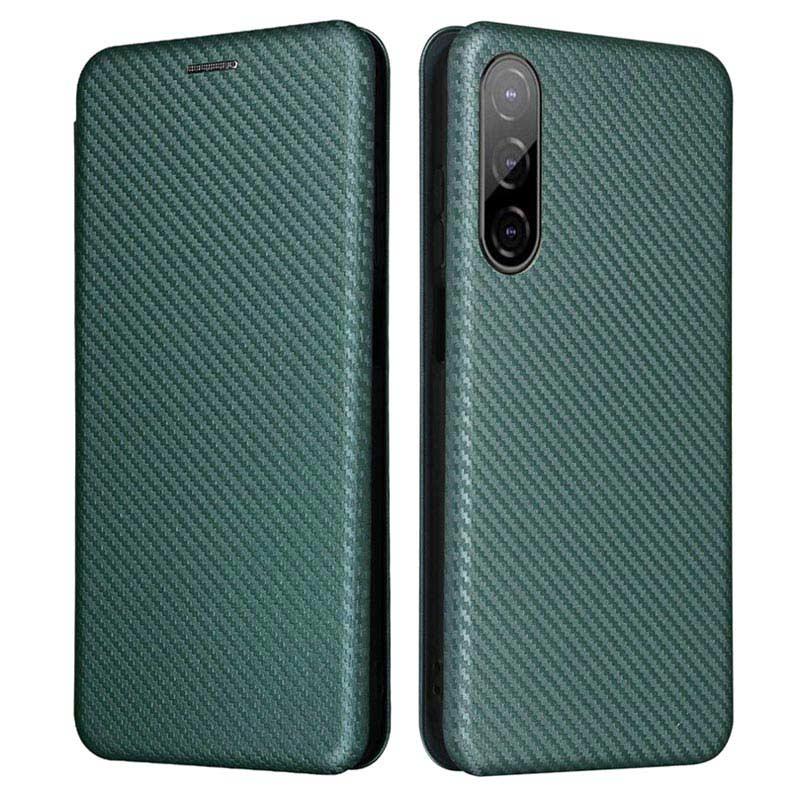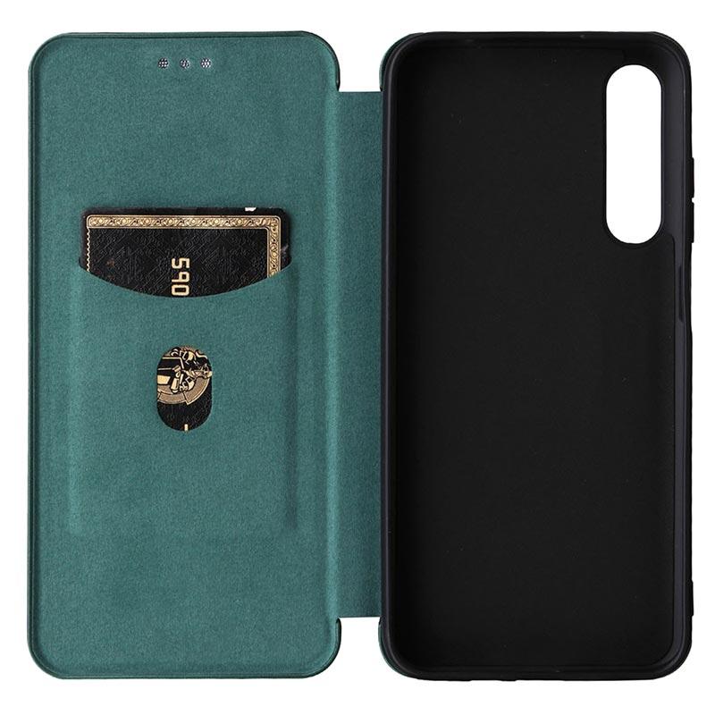 - Elegante bolsa tipo carteira com textura de fibra de carbono para HTC Desire 22 Pro