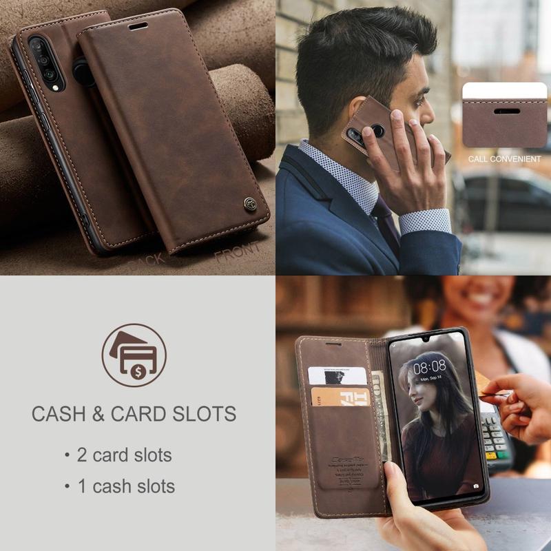 - Bolsa tipo carteira Caseme 013 Series para o seu precioso Huawei P30 Lite