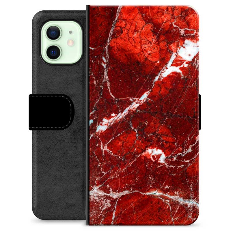 Bolsa tipo Carteira para iPhone 12 - Mármore Vermelho
