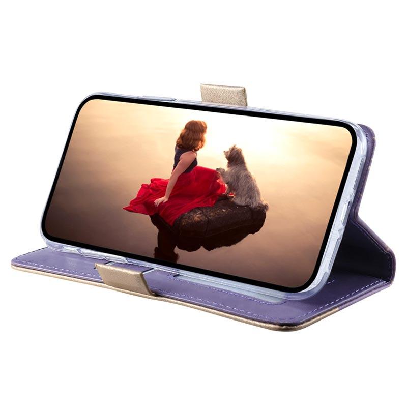 - Bolsa tipo carteira em dois tons para o iPhone 14 Pro Max, com um formoso padrão rendado