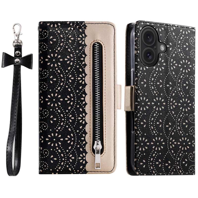 Bolsa tipo Carteira Lace Pattern para iPhone 16 Plus