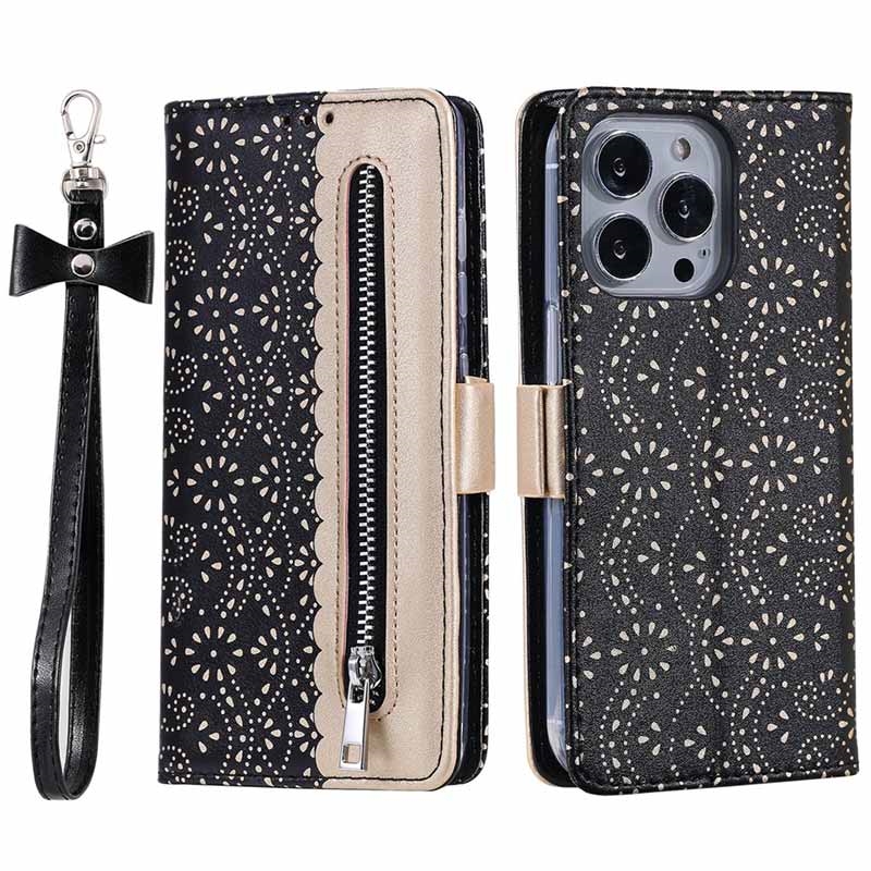 Bolsa tipo Carteira Lace Pattern para iPhone 16 Pro