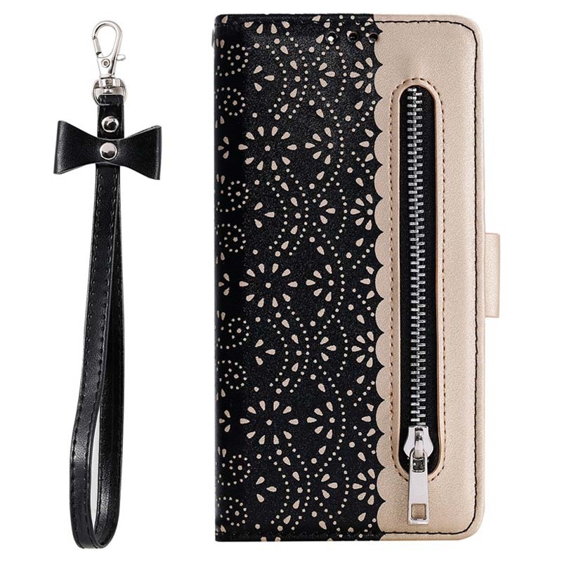 Esta bolsa tipo carteira incrivelmente elegante com padrão rendado protege o seu iPhone 16 Pro de danos e o bolso frontal com fecho permite guardar dinheiro.
