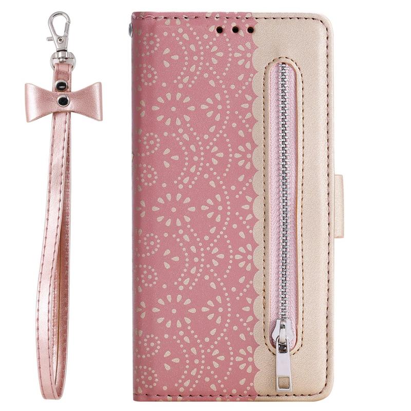 Esta bolsa tipo carteira incrivelmente elegante com padrão rendado protege o seu iPhone 16 Pro de danos e o bolso frontal com fecho permite guardar dinheiro.
