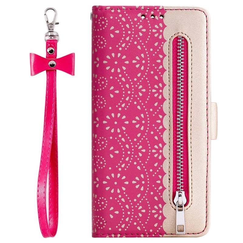 Torne o seu Huawei P40 Lite irresistível com o padrão de renda desta bolsa tipo carteira.Este acessório cativante complementa o seu smartphone ao mesmo tempo que o mantém protegido de perigos. Além disso, possui vários compartimentos de armazenamento para os seus cartões e algum dinheiro, e vem com uma pulseira prática, que lhe dá maior segurança em locais lotados.