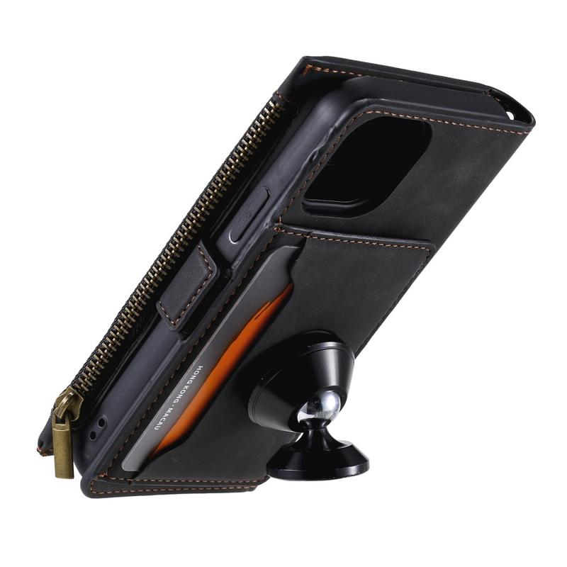 - Elegante bolsa estilo carteira com fecho éclair para o iPhone 14 Pro Max da Saii