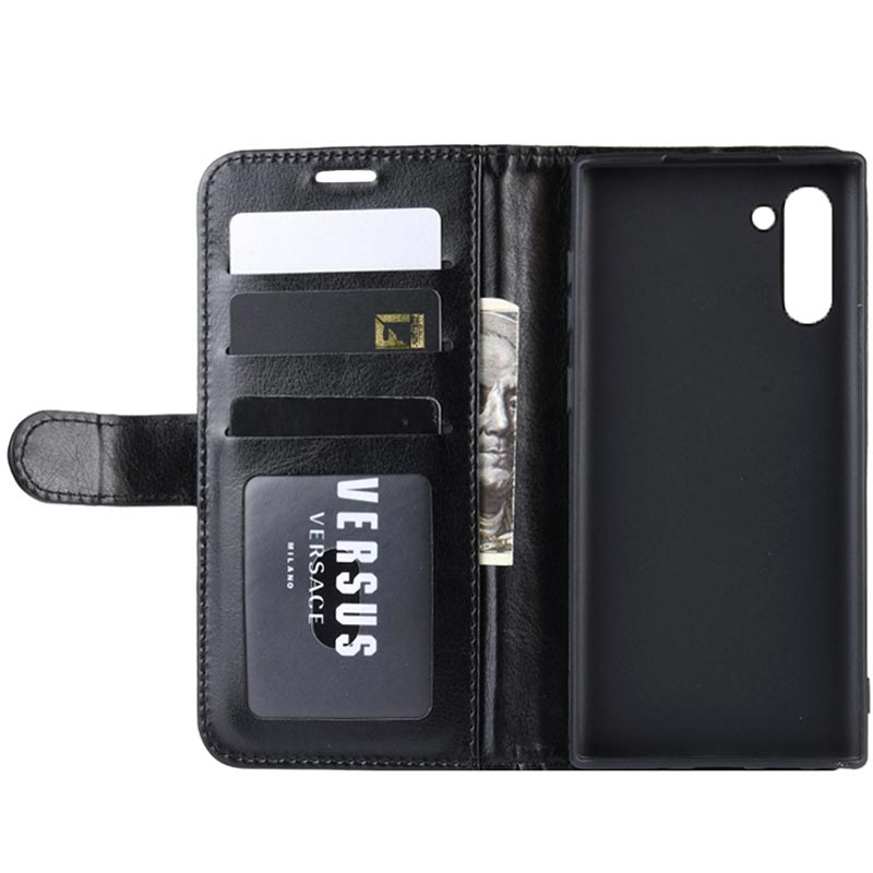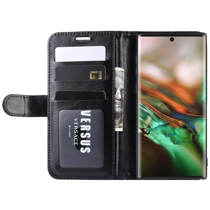 - Uma bolsa tipo carteira de qualidade superior, com uma superfície elegante para o Samsung Galaxy Note 10