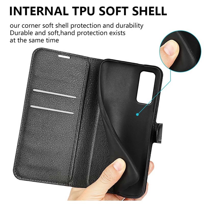 Esta bolsa tipo carteira premium para o Samsung Galaxy S20 5G melhora a experiência do utilizador, graças à parte de trás dobrável integrada e aos múltiplos bolsos. Feita de Poliuretano de alta qualidade com uma capa de TPU à prova de choque integrada.