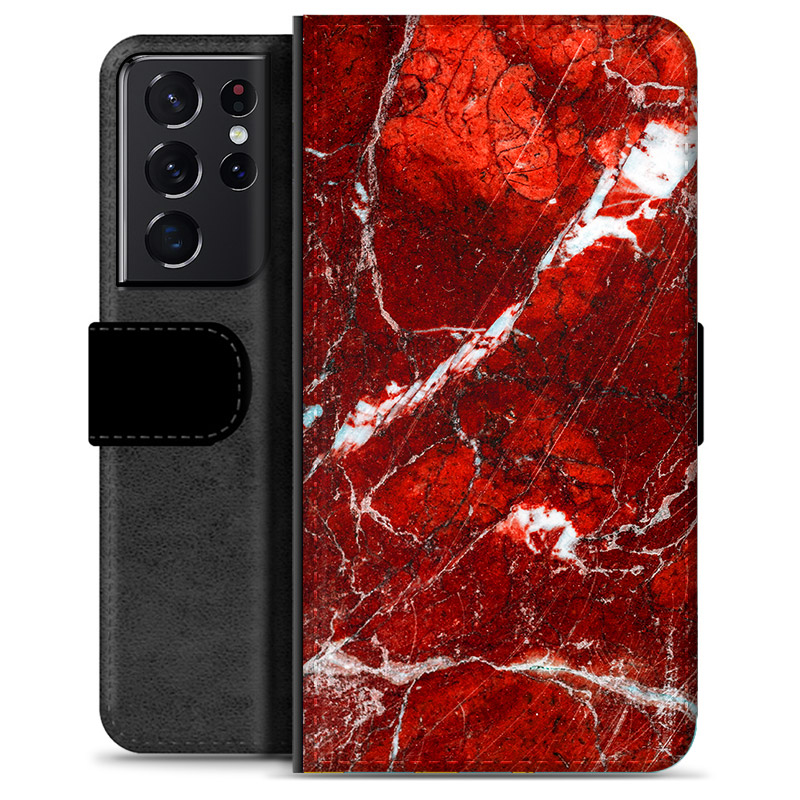 Bolsa tipo Carteira - Samsung Galaxy S21 Ultra 5G - Mármore Vermelho