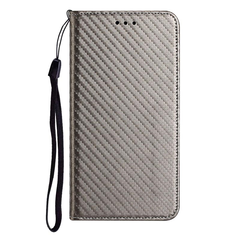 Mantenha o seu Samsung Galaxy S22 5G em perfeitas condições, revestindo-o com esta bolsa tipo carteira com uma textura de fibra de carbono. Tem uma alça de mão e compartimentos para o seu dinheiro e cartões.