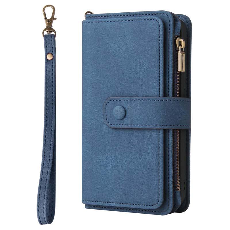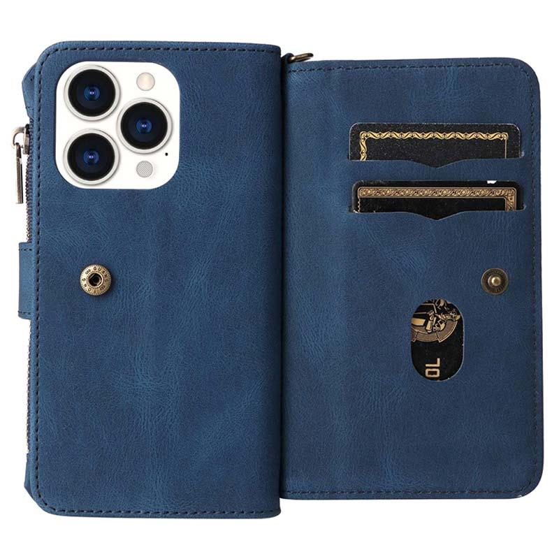 Mantenha os seus valores junto ao seu iPhone 14 Pro Max com esta bolsa estilo carteira multiusos. As múltiplas divisórias e o bolso com fecho éclair permitem-lhe guardar cartões, documentos e algum dinheiro, enquanto a alça incluída evita quedas acidentais. Esta elegante bolsa tipo carteira representa uma excelente proteção para o seu iPhone 14 Pro Max contra o pó, riscos e pequenos impactos.