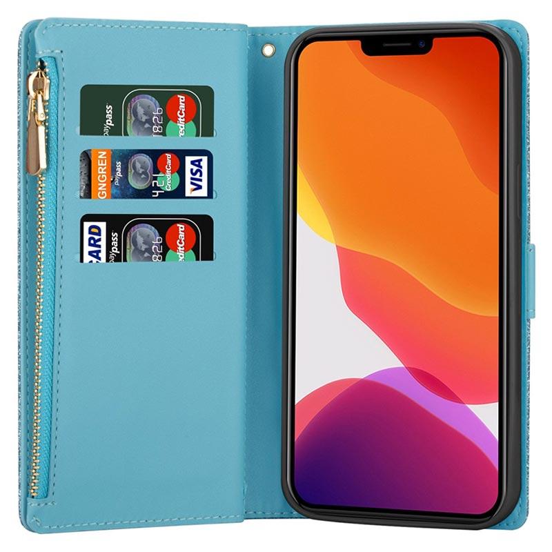 Revista o seu iPhone 14 Pro com esta bolsa onírica e obtenha muitos compartimentos práticos. Esta bolsa tipo carteira é reforçada com uma capa interior em TPU à prova de choque, que assegura uma excelente proteção contra tombos e impactos. Para além de várias divisórias para cartões, esta bolsa tipo carteira tem um bolso com fecho-éclair para guardar algum dinheiro e objetos pequenos. O seu design brilhante faz com que o seu iPhone 14 Pro tenha um aspeto deslumbrante. A alça destacável permite-lhe transportar os seus bens de forma segura e elegante.