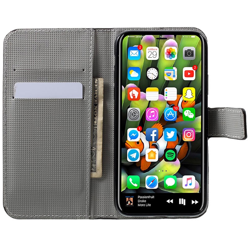 Vista o seu iPhone X, iPhone XS com um padrão divertido para o manter seguro e livre de arranhões. Esta capa tipo carteira única para o iPhone X, iPhone XS Style Series oferece ranhuras para cartões e dinheiro e possui ímanes incorporados que a mantêm fechada com segurança. Feita de poliuretano de qualidade, a mala é fácil de limpar e ideal para um uso diário.