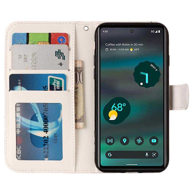 - Estilo atraente e proteção total serão proporcionados pela bolsa estilo carteira da série Wonder ao seu Google Pixel 7a