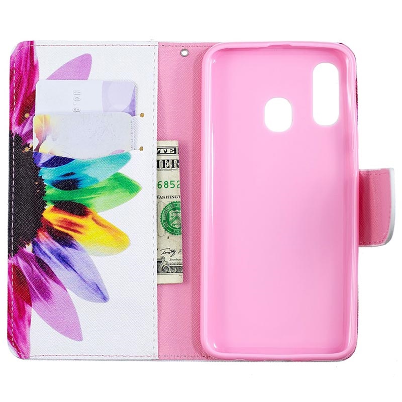 Deixe o seu Samsung Galaxy A40 mais divertido ao mesmo tempo que o protege dos danos diários. A capa dá ao seu Samsung Galaxy A40 um padrão único e deixa-o ainda mais bonito. Esta capa tipo flip possui duas ranhuras para cartões e um bolso maior onde você pode armazenar dinheiro ou notas dobradas.