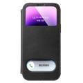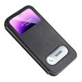 Capa à prova de choque para iPhone 14 capa de telefone anti-queda com janela dupla capa de celular de couro genuíno com suporte