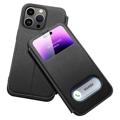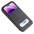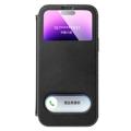 Capa de couro genuíno para iPhone 14 Pro Max capa à prova de choque capa de telefone anti-queda de janela dupla com suporte