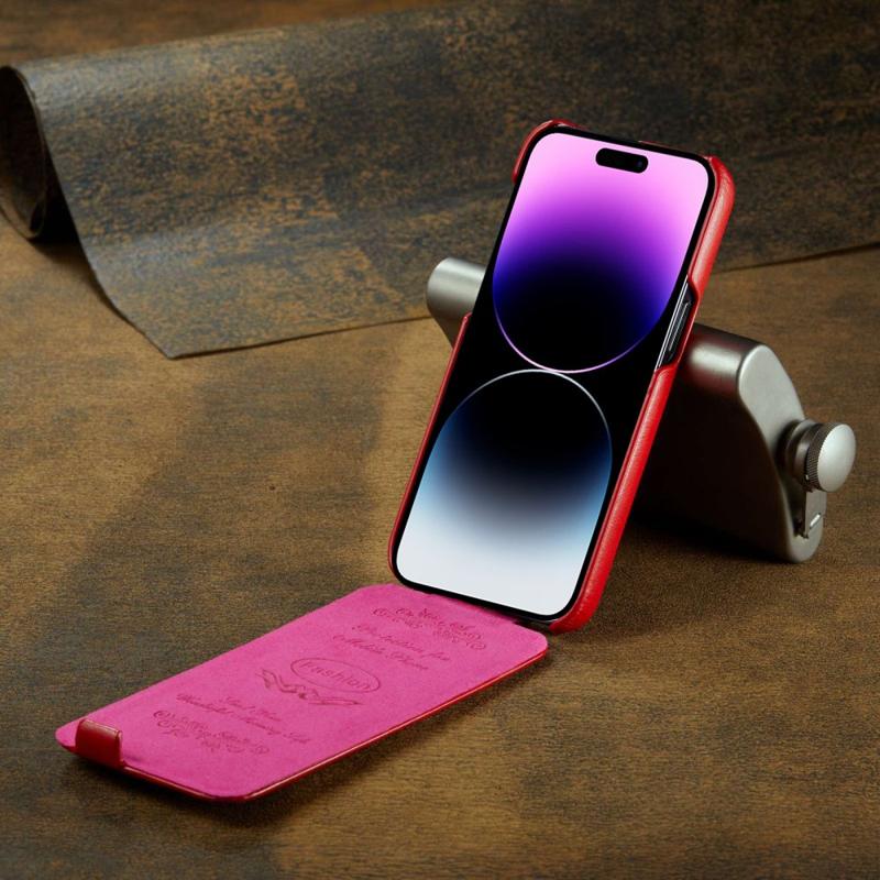 Capa protetora de couro PU para iPhone 14 Pro Max vertical com estampa estampada textura cavalo louco capa protetora à prova de choque