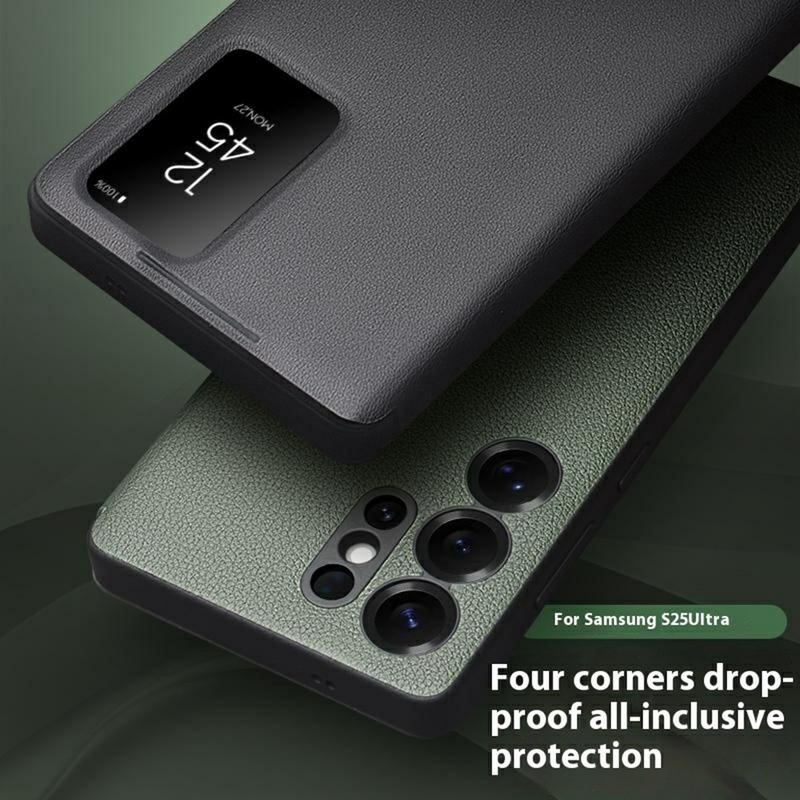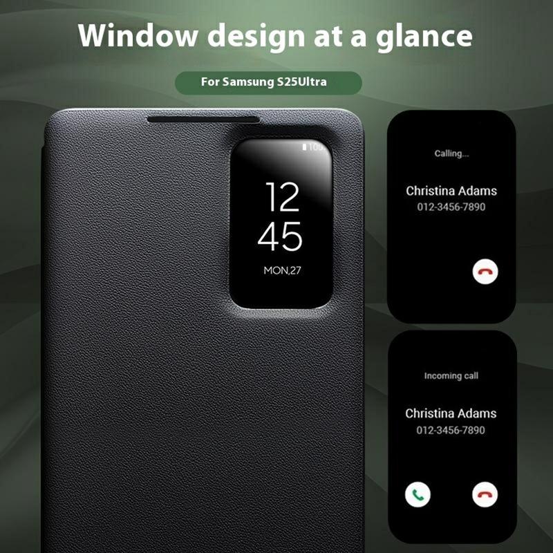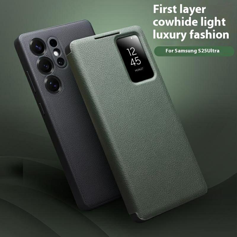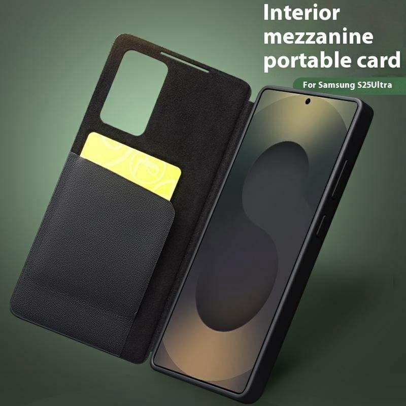 - Bolsa estilo flip em pele genuína para o Samsung Galaxy S25 Ultra da Qialino