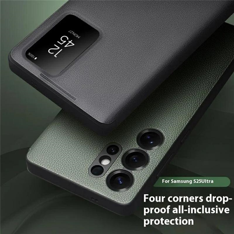 - Bolsa estilo flip em pele genuína para o Samsung Galaxy S25 Ultra da Qialino