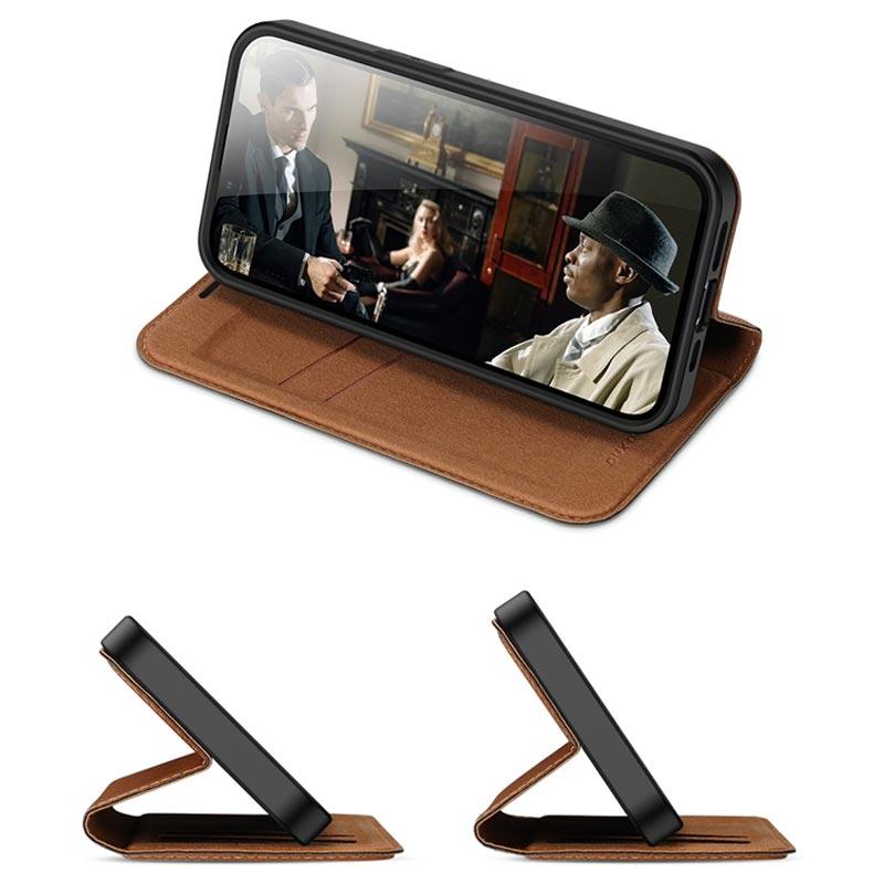 Upgrade your iPhone 14's look with this premium-looking Dux Ducis flip case. The Dux Ducis Skin X2 case guarantees all-around protection from scratches, drops, and any daily damage. The case is molded from high-quality polyurethane with soft TPU to fit your iPhone 14 perfectly. Hidden magnets will prevent the case from unwanted openings. It contains two pockets for your most important credit cards. The inner honeycomb design improves heat dissipation so your phone won't overheat. The case has an adjustable kickstand feature for hands-free media viewing.